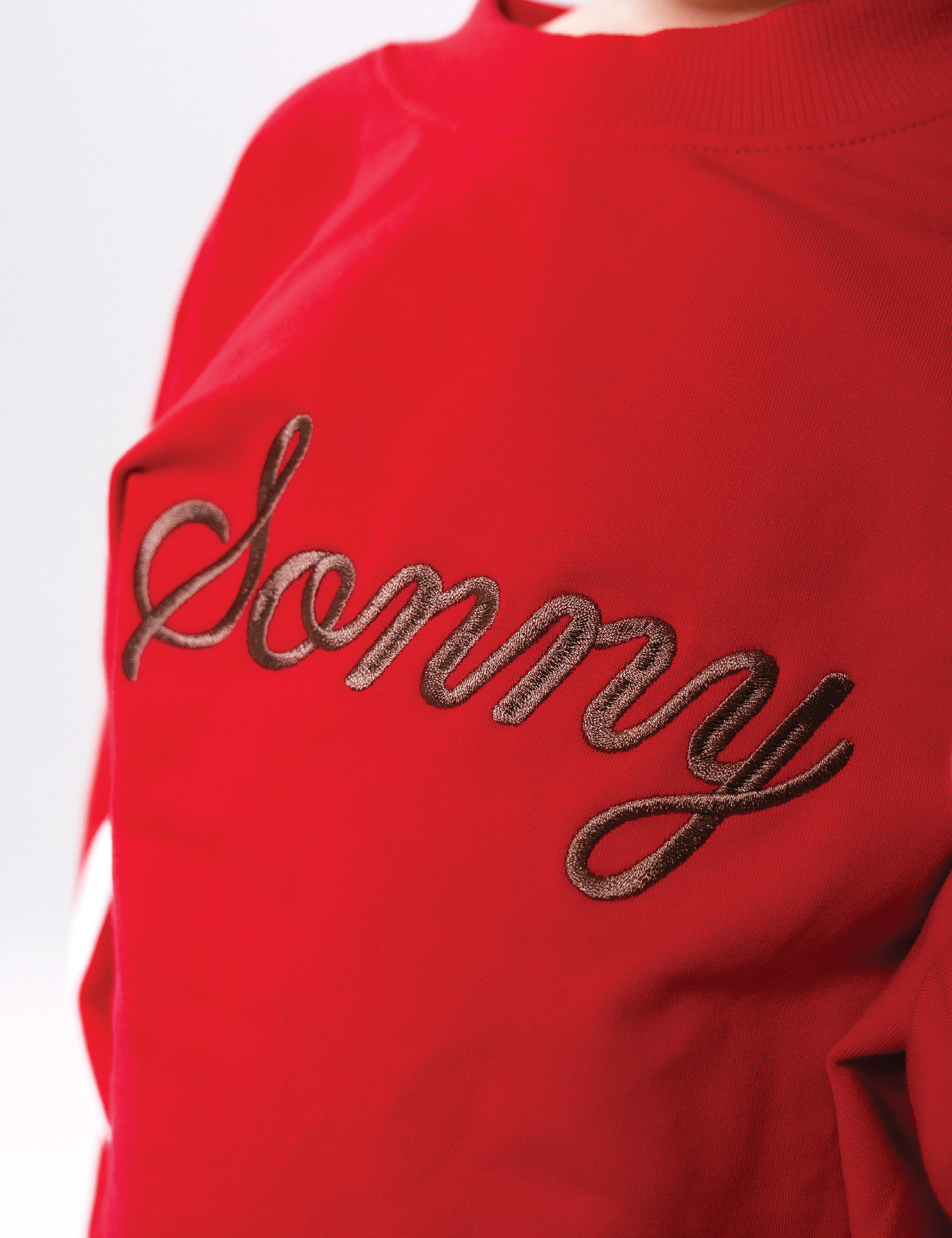 Features embroidered Sonny text and white sport stripes down each arm